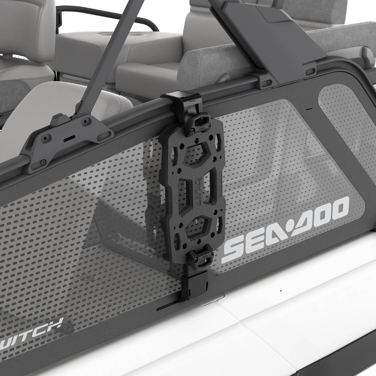 This industry-first storage solution revolutionizes watercraft storage by utilizing rails for integrated LinQ accessories. Maximize your storage capacity without sacrificing valuable floor space. The versatile modular design lets you effortlessly switch mounting locations, ensuring secure cargo and enhanced usability. Experience the convenience of tool-less installation and unlock a new level of storage efficiency on your pontoon with Sea-Doo.